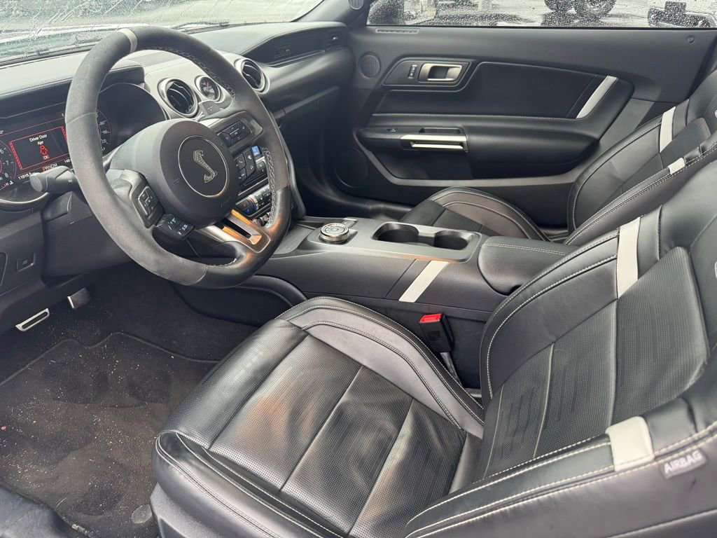 Elevate your driving experience with this exceptional 2021 Ford Mustang Shelby GT500. Boasting a powerful 5.2L V8 engine and a 7-speed automatic transmission, this high-performance sports car delivers an exhilarating and responsive driving dynamic that will leave you craving the open road.- Handling Package: Includes adjustable strut top mounts, catch can, gurney flap, and splitter wickers- Technology Package: Blind Spot Information System, Cross-Traffic Alert, Voice-Activated Navigation, and premium B&O Sound System- Vinyl Over-the-Top Racing Stripe- Black Indoor Car Cover (Dealer Installed)This Mustang Shelby GT500 is equipped with an impressive array of features that elevate the driving experience. The adaptive suspension and four-wheel independent suspension provide a refined and responsive ride, while the 4-wheel disc brakes with ABS ensure confident and controlled stopping power. The SYNC 3 communications and entertainment system, complete with SiriusXM radio and a premium B&O sound system, will keep you connected and entertained on every journey.The exterior of this Mustang Shelby GT500 exudes an aggressive and bold presence, with its distinctive white paint and Shelby-inspired design cues. The 20-inch flow-formed high-gloss black aluminum wheels and performance tires further accentuate the vehicle's sporty character, while the Blind Spot Information System and Rear View Camera provide added peace of mind and convenience.Step inside this Mustang Shelby GT500, and you'll be greeted by a cabin that seamlessly blends performance and luxury. The leather-trimmed sport seats, with climate control and ventilation, offer exceptional comfort and support, while the voice-activated navigation system and premium audio system ensure a truly immersive driving experience.Whether you're seeking the ultimate performance machine or a head-turning sports car that will turn heads wherever you go, this 2021 Ford Mustang Shelby GT500 is the perfect choice. Experience the thrill of uncompromising power and refined handling that will leave a lasting impression. Visit our showroom today and let us demonstrate the exceptional capabilities of this remarkable vehicle.