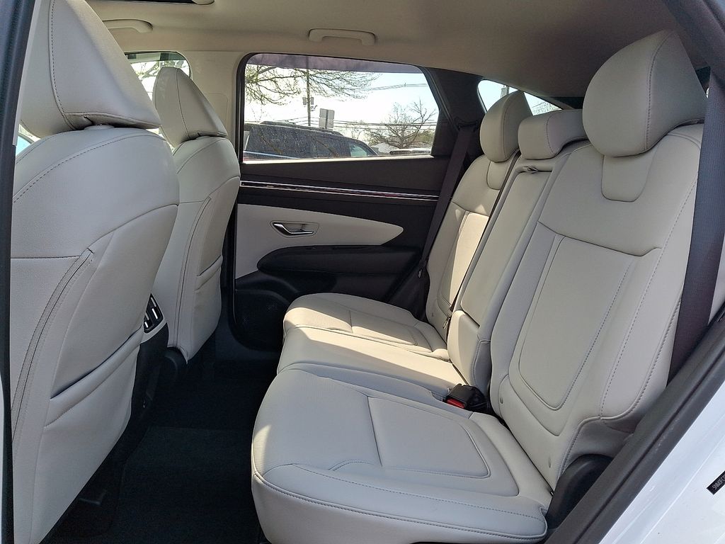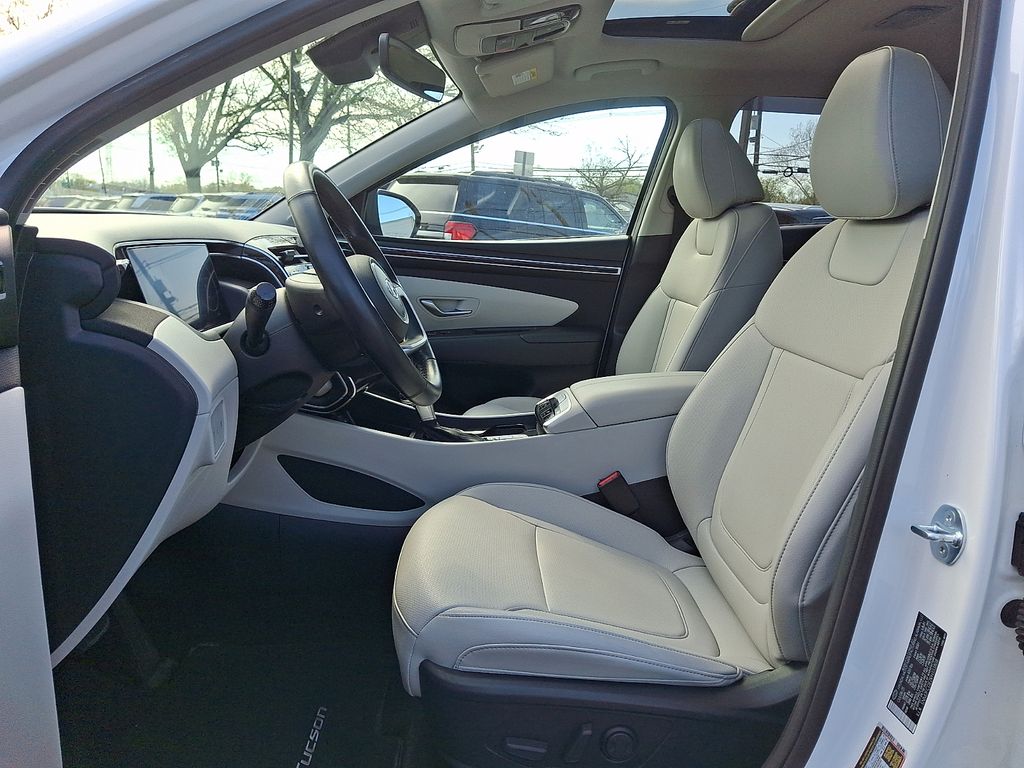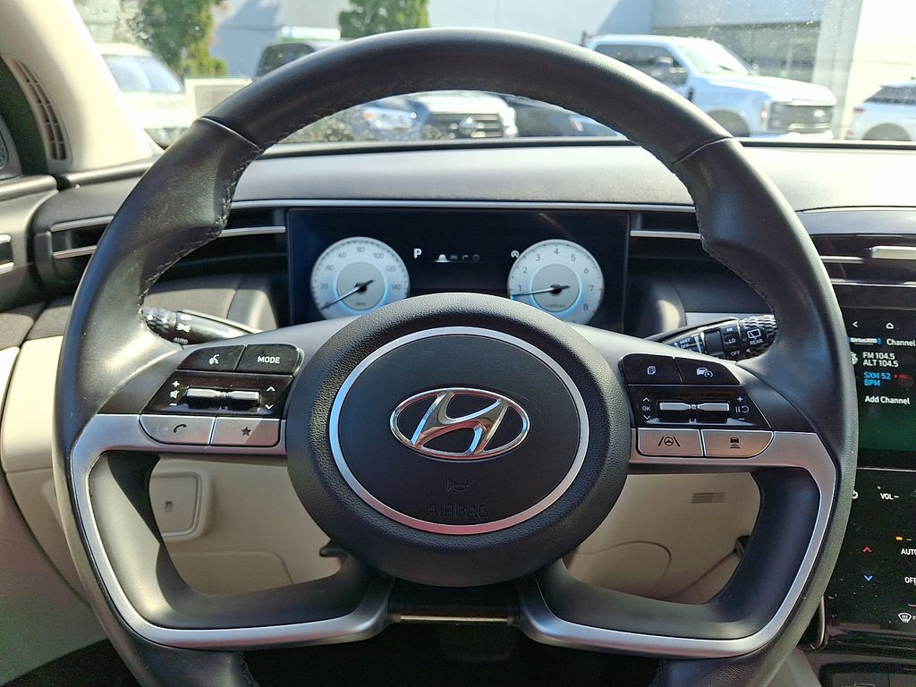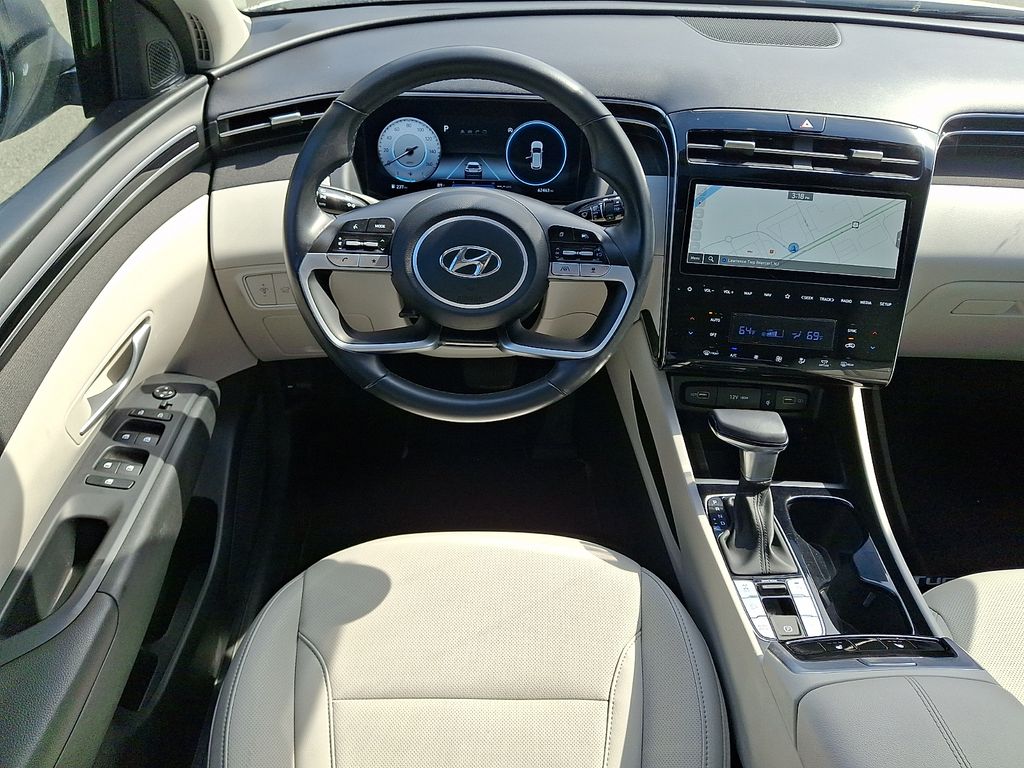 The Tucson's interior is a study in refined comfort and technology. The 10.25" digital instrument cluster provides a clear and customizable display, while the 10.25" touchscreen infotainment system keeps you connected and entertained. Dual-zone automatic climate control ensures everyone on board enjoys their ideal temperature, and the leather-wrapped steering wheel and shift knob add a touch of premium sophistication.